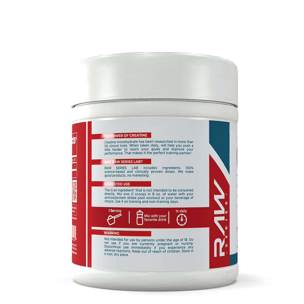 Raw Series Lab Creatine es creatina monohidrato pura para aumentar fuerza y masa muscular. La creatina es el suplemento más estudiado y efectivo para mejorar el rendimiento físico. Presentación: 200 SERVICIOS.