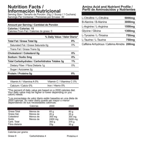Fórmula pre-entreno diseñada para mejorar el rendimiento, la energía y el enfoque durante los entrenamientos más exigentes.