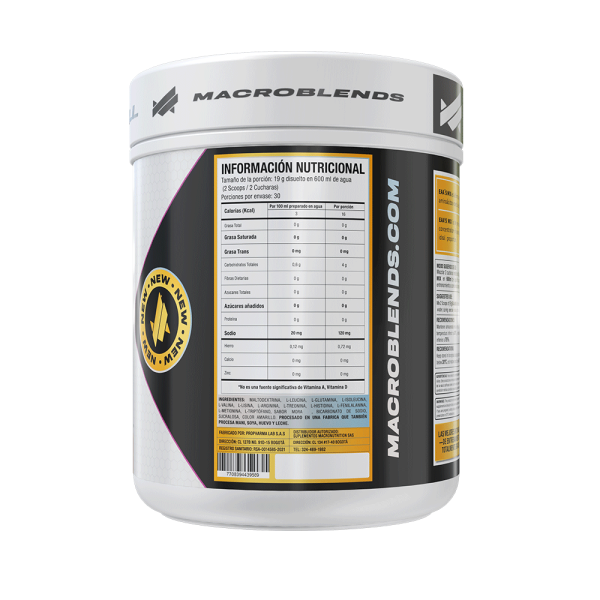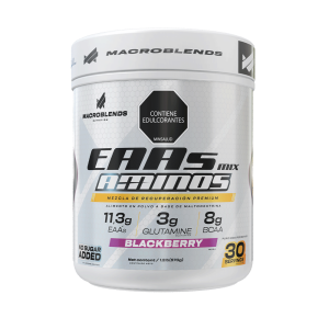 MACROBLENDS EAAS MIX AMINOS proporciona aminoácidos esenciales para prevenir el catabolismo muscular y mejorar la recuperación. Ideal para tomar durante o después del entrenamiento. Presentación: 30 SERVICIOS.