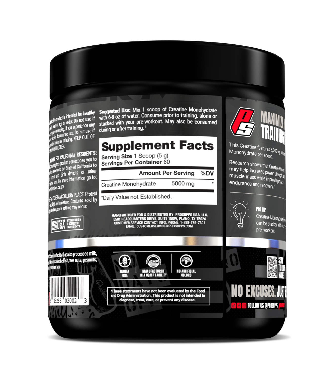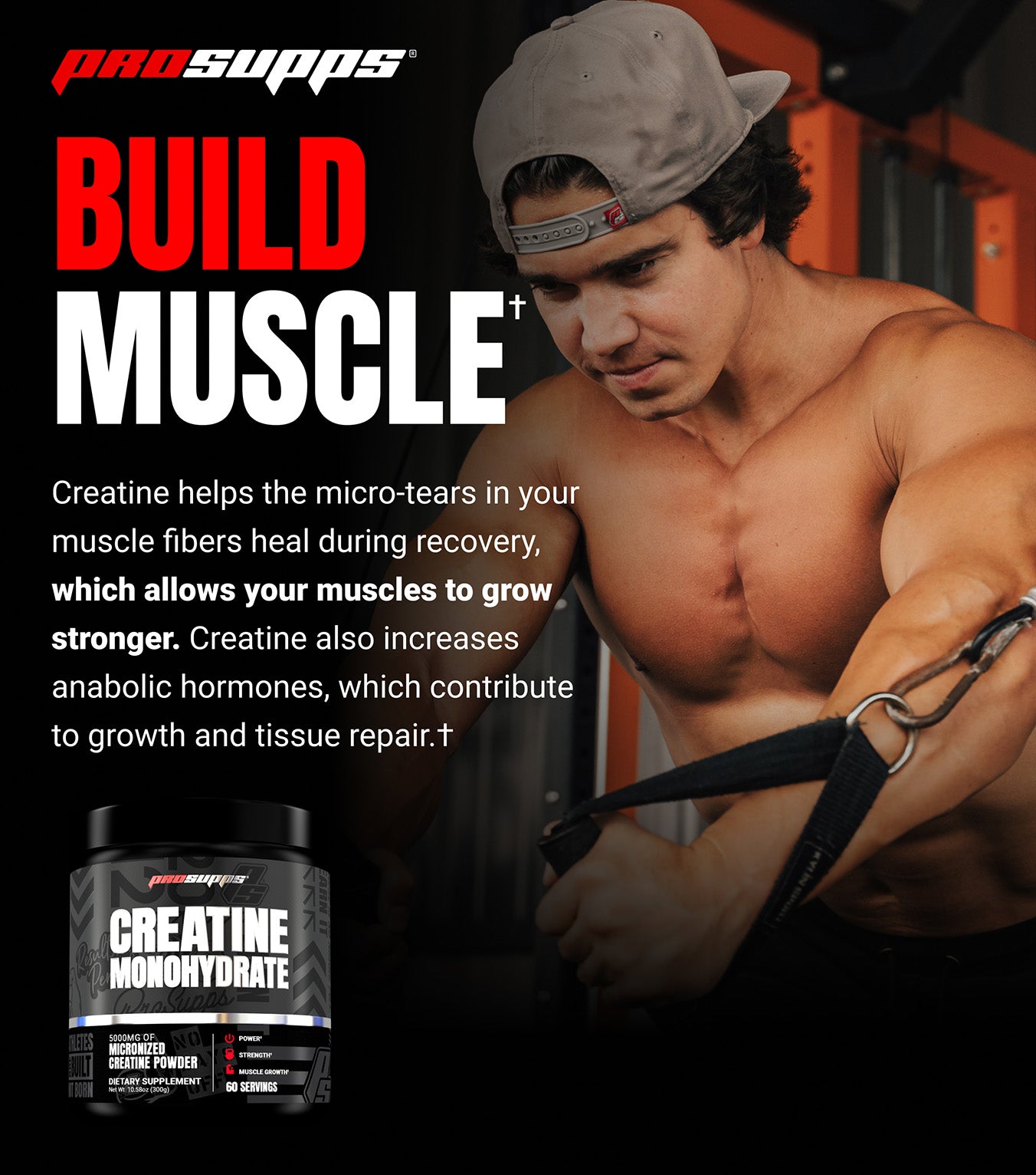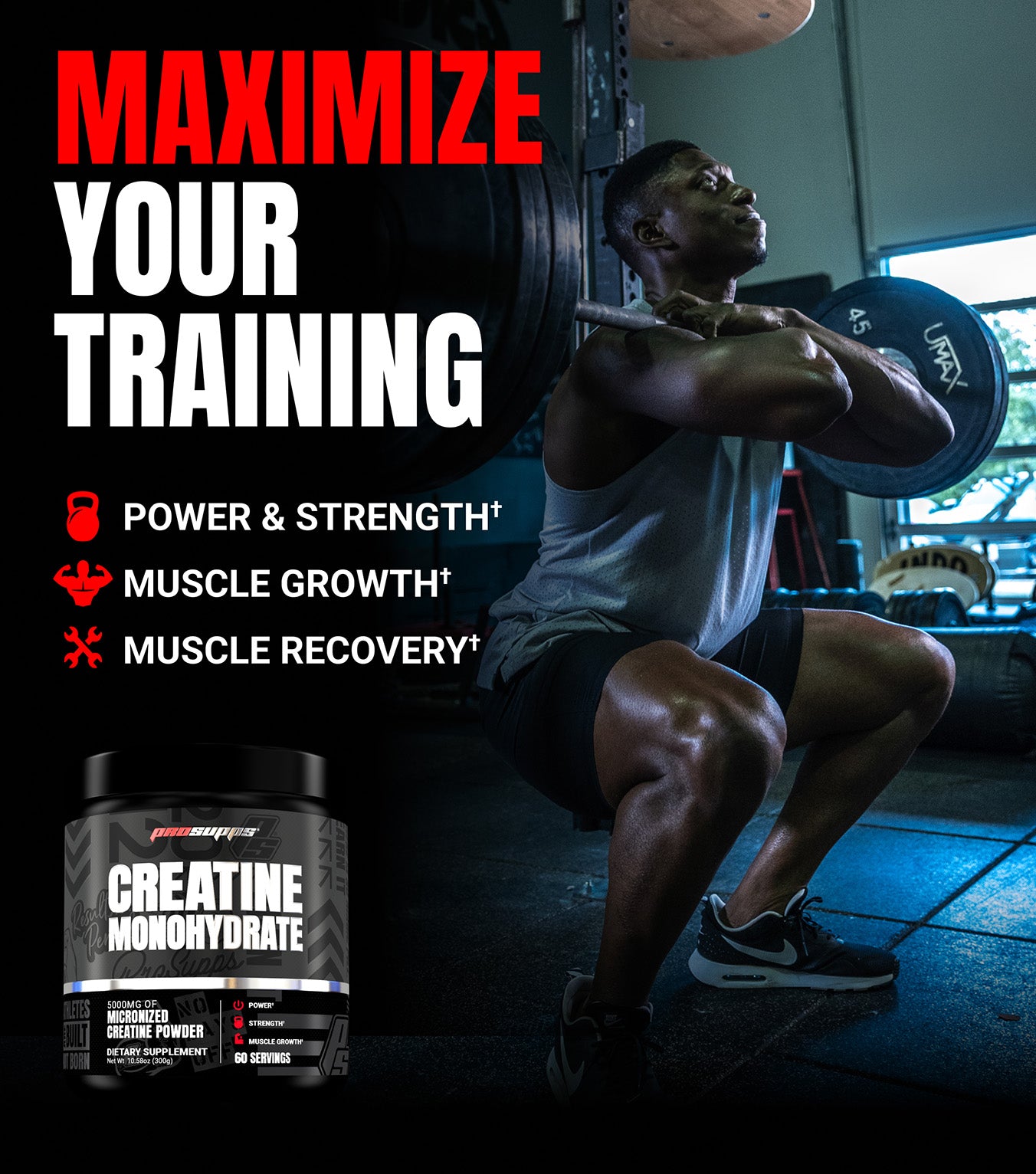 PROSUPPS CREATINE MONOHYDRATE es creatina monohidrato pura para aumentar fuerza y masa muscular. La creatina es el suplemento más estudiado y efectivo para mejorar el rendimiento físico. Presentación: 60 SERVICIOS.
